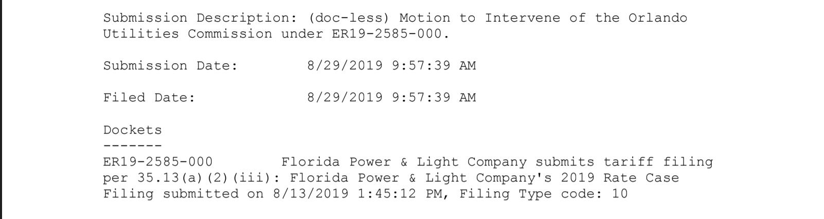 August 13, 2019: FPL sent a letter to the Federal Energy Regulatory Commission (FERC), requesting a “formula rate,” which would replace their periodical rate filings with an annual adjustment, effective November 1, 2019. The projected rate in that letter for November-December 2019 was $2.10/kW-month.